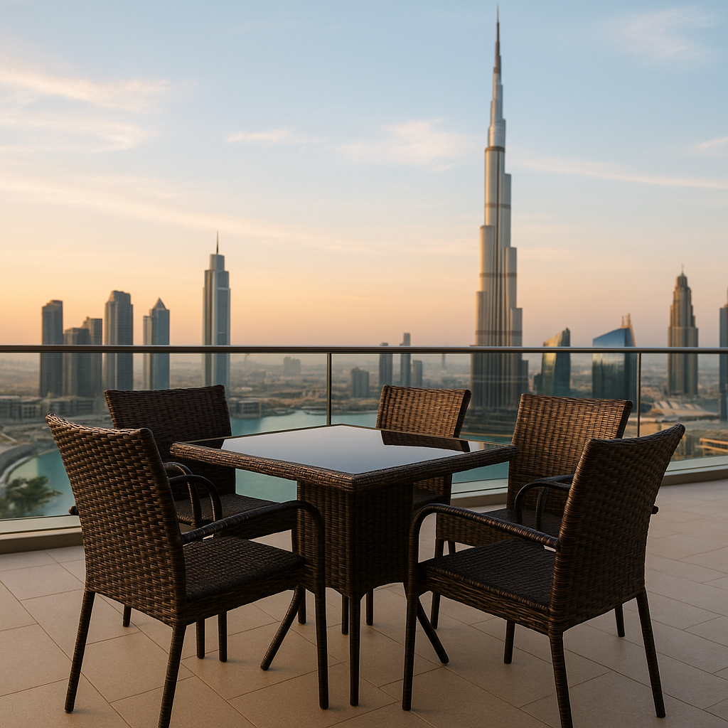 Finished in deep woven tones with a smooth tabletop surface, this set blends seamlessly into urban outdoor environments while remaining durable and easy to maintain in the UAE climate.